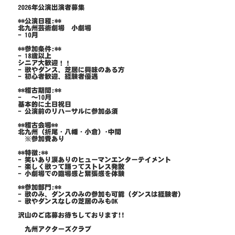 九州アクターズクラブ YouTubeチャンネル コチラから Instagram コチラから フォローよろしくお願いします!