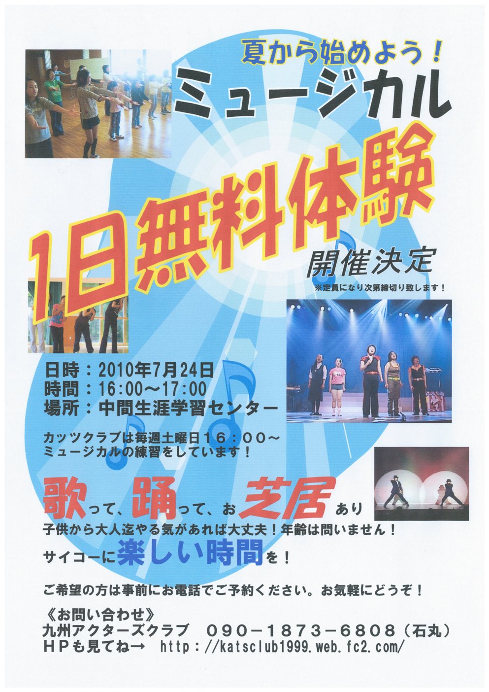 | ミュージカル1日無料体験開催! |